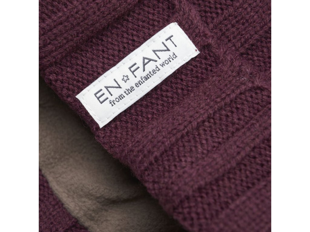 Pletená čepice od EN FANT. Čepice má nahoře kožešinovou bambulku a uvnitř je měkká fleecová podšívka.