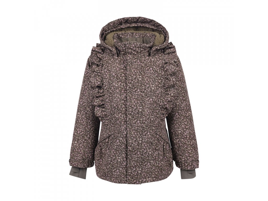 Krásná dívčí bunda s volánky, ale zároveň s vysokým vodním sloupcem je využitelná jako bunda do města ale i na lyže.