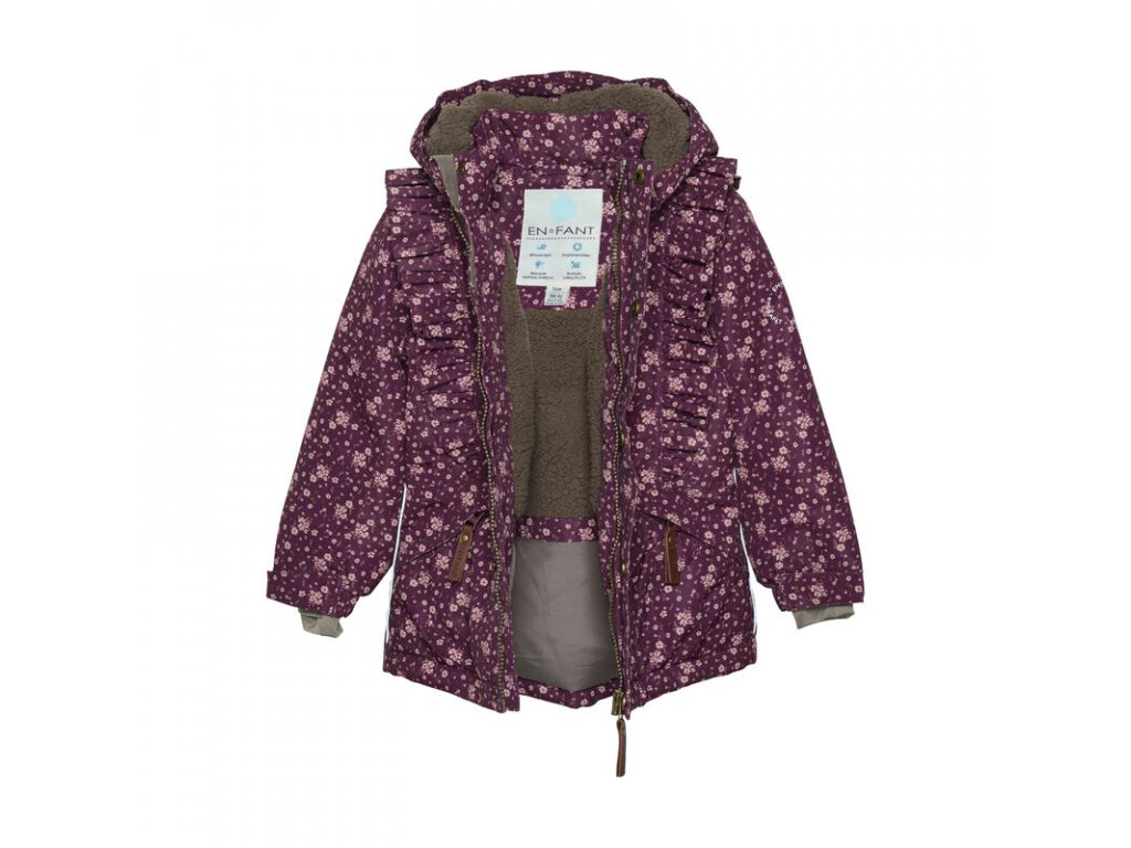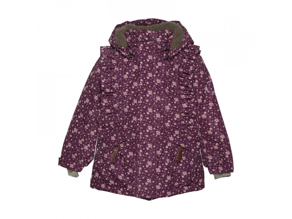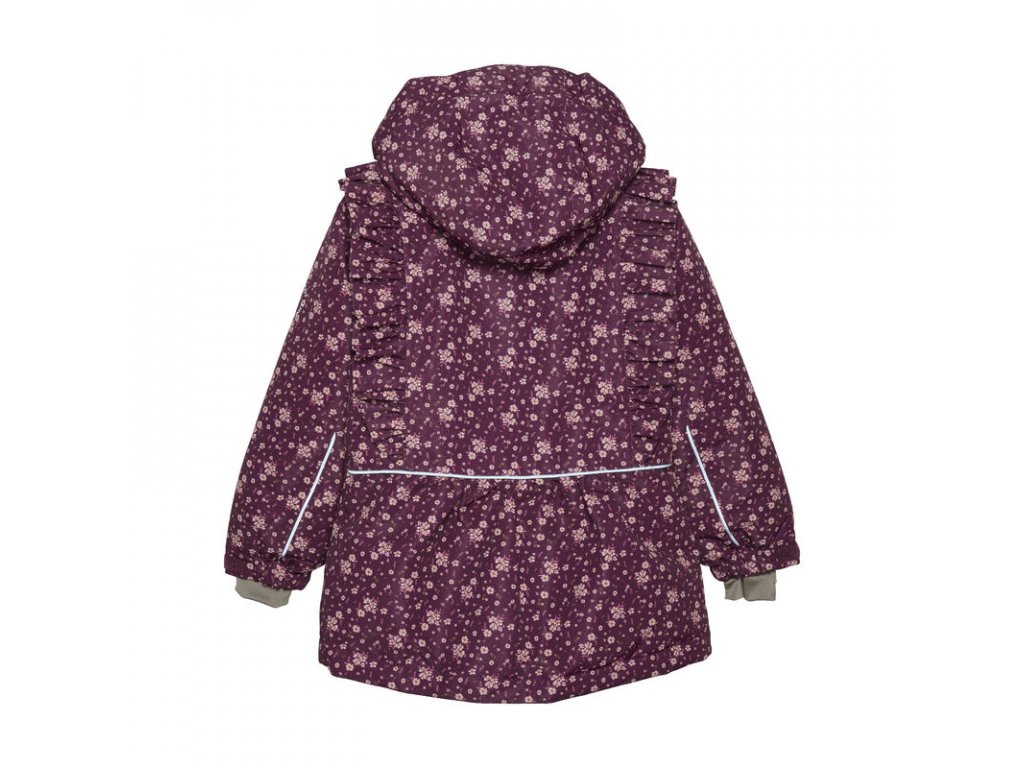 Krásná dívčí bunda s volánky, ale zároveň s pásem proti sněhu je využitelná jako bunda do města ale i na lyže.