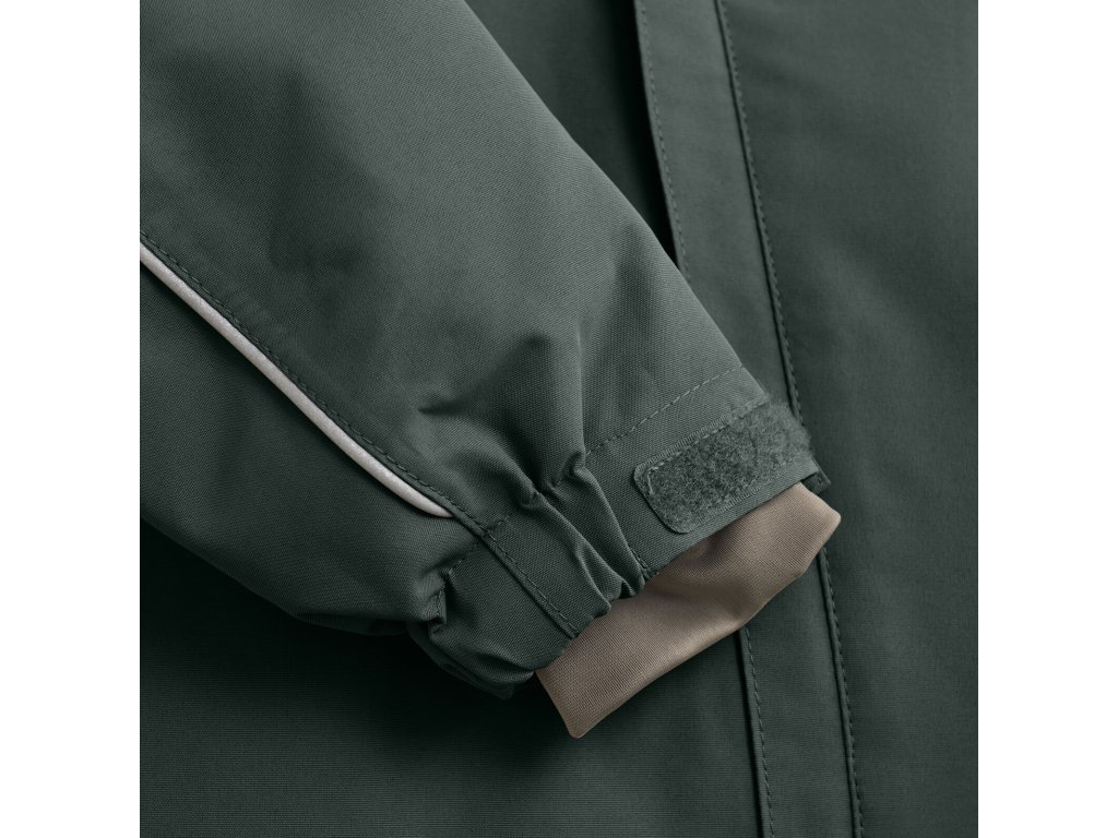 Kapuce lze odepnout, nebo lze odepnout jen kožešinový límec. Na rukávech je náplet s otvorem na prst a rukávy lze stáhnout suchým zipem.