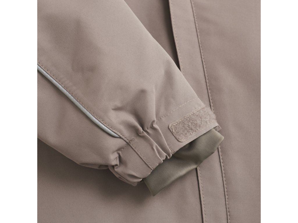 Kapuce lze odepnout, nebo lze odepnout jen kožešinový límec. Na rukávech je náplet s otvorem na prst a rukávy lze stáhnout suchým zipem.