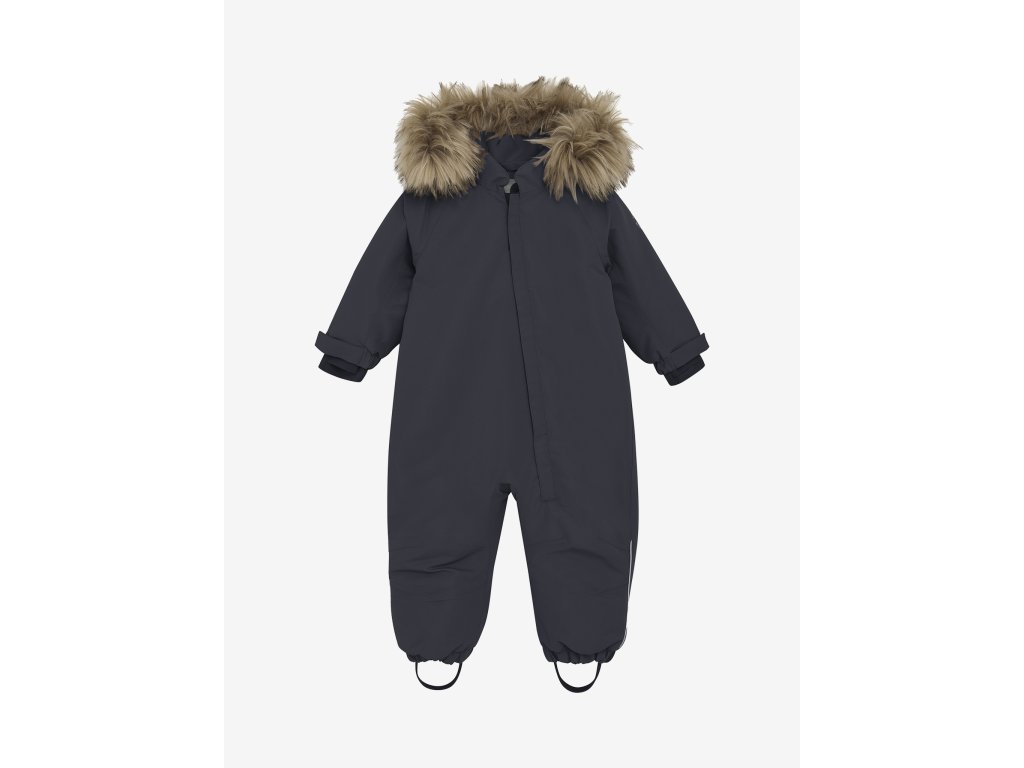 Sněhová kombinéza má odnímatelnou kapuci, kde lze odstranit kožešinový okraj.