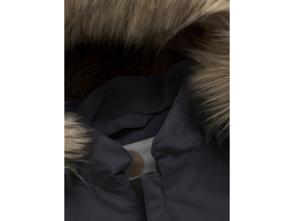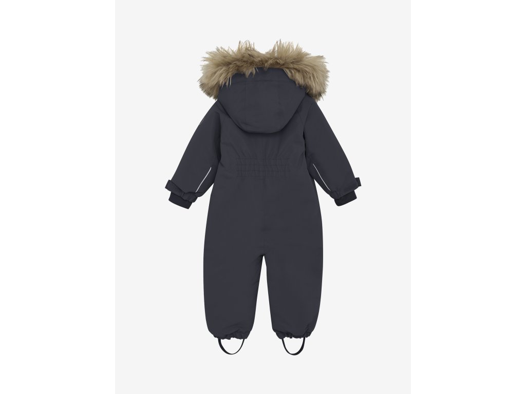 Sněhová kombinéza má odnímatelnou kapuci, kde lze odstranit kožešinový okraj.