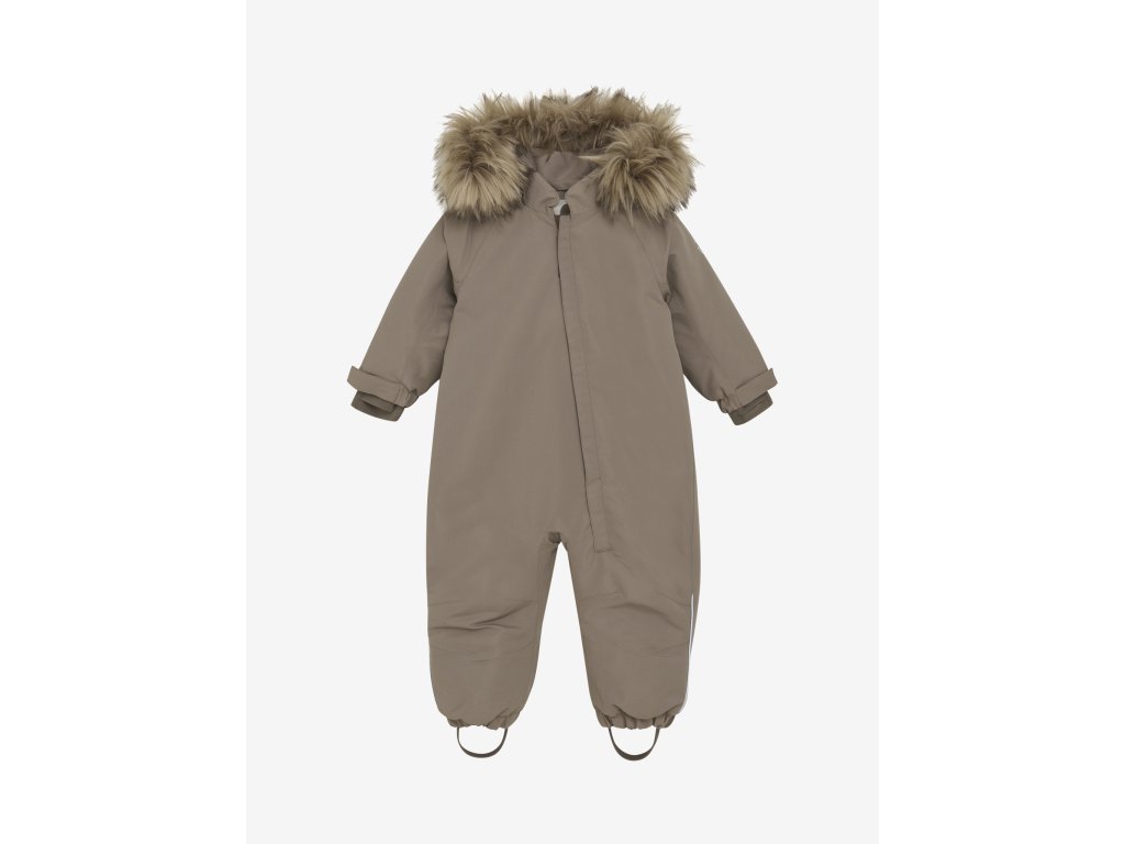 Sněhová kombinéza má odnímatelnou kapuci, kde lze odstranit kožešinový okraj.