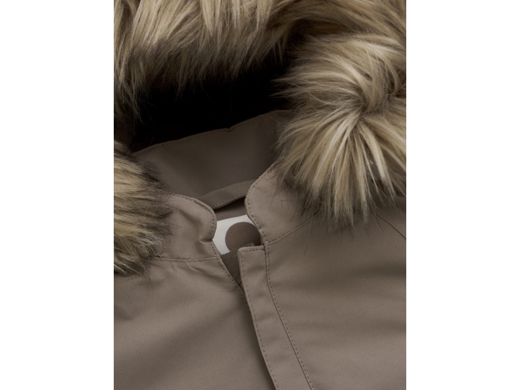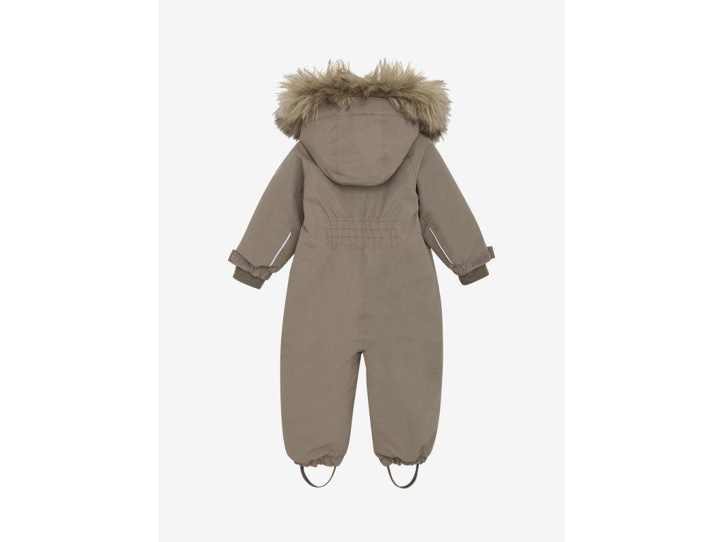 Sněhová kombinéza má odnímatelnou kapuci, kde lze odstranit kožešinový okraj.