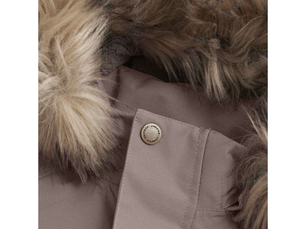 Kapuce lze odepnout, nebo lze odepnout jen kožešinový límec. Na rukávech je náplet s otvorem na prst a rukávy lze stáhnout suchým zipem.