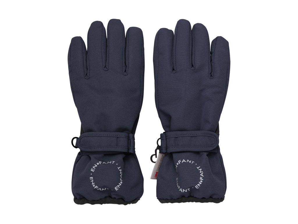 Zateplené zimní dětské rukavice z voděodolného a větruodolného, prodyšného materiálu s povrchem odpuzujícím vodu a nečistoty.