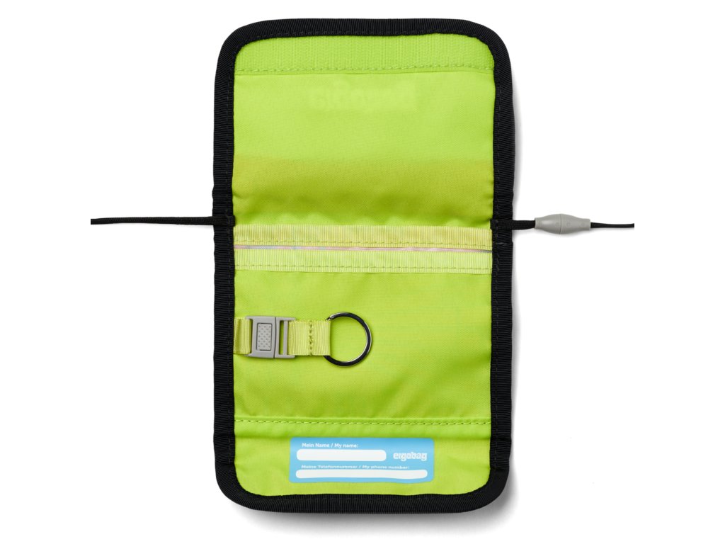 Multifunkční peněženka Ergobag je praktickým doplňkem každého školáka. 2 v 1 peněženka a klíčenka v jednom. Uvnitř je kroužek na klíče a prostor na bankovky či průkazky. Je uzavíratelná na suchý zip. V přední části je zip s kapsou na drobné mince. Zadní část má průhledné indexové okénko. Velmi praktická je šňůrka na krk s bezpečnostní přezkou, která se uvolní při působící síle více než 6 newtonů.