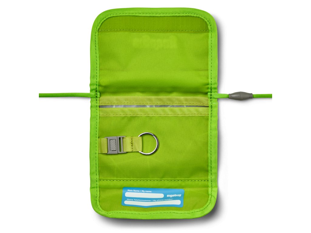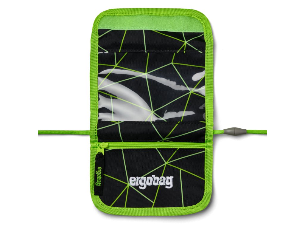 Multifunkční peněženka Ergobag je praktickým doplňkem každého školáka. 2 v 1 peněženka a klíčenka v jednom. Uvnitř je kroužek na klíče a prostor na bankovky či průkazky. Je uzavíratelná na suchý zip. V přední části je zip s kapsou na drobné mince. Zadní část má průhledné indexové okénko. Velmi praktická je šňůrka na krk s bezpečnostní přezkou, která se uvolní při působící síle více než 6 newtonů.