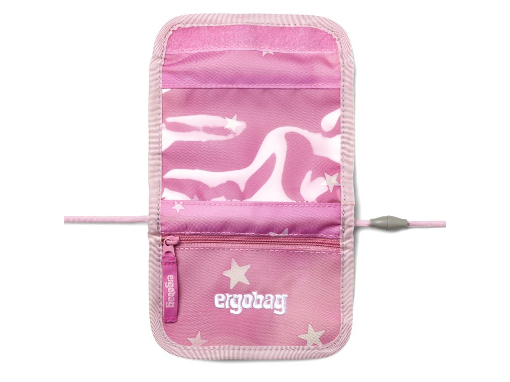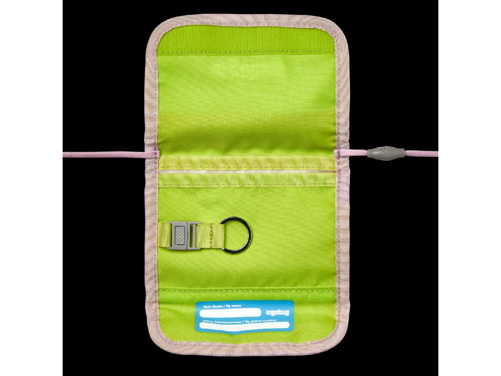 Multifunkční peněženka Ergobag je praktickým doplňkem každého školáka. 2 v 1 peněženka a klíčenka v jednom. Uvnitř je kroužek na klíče a prostor na bankovky či průkazky. Je uzavíratelná na suchý zip. V přední části je zip s kapsou na drobné mince. Zadní část má průhledné indexové okénko. Velmi praktická je šňůrka na krk s bezpečnostní přezkou, která se uvolní při působící síle více než 6 newtonů.