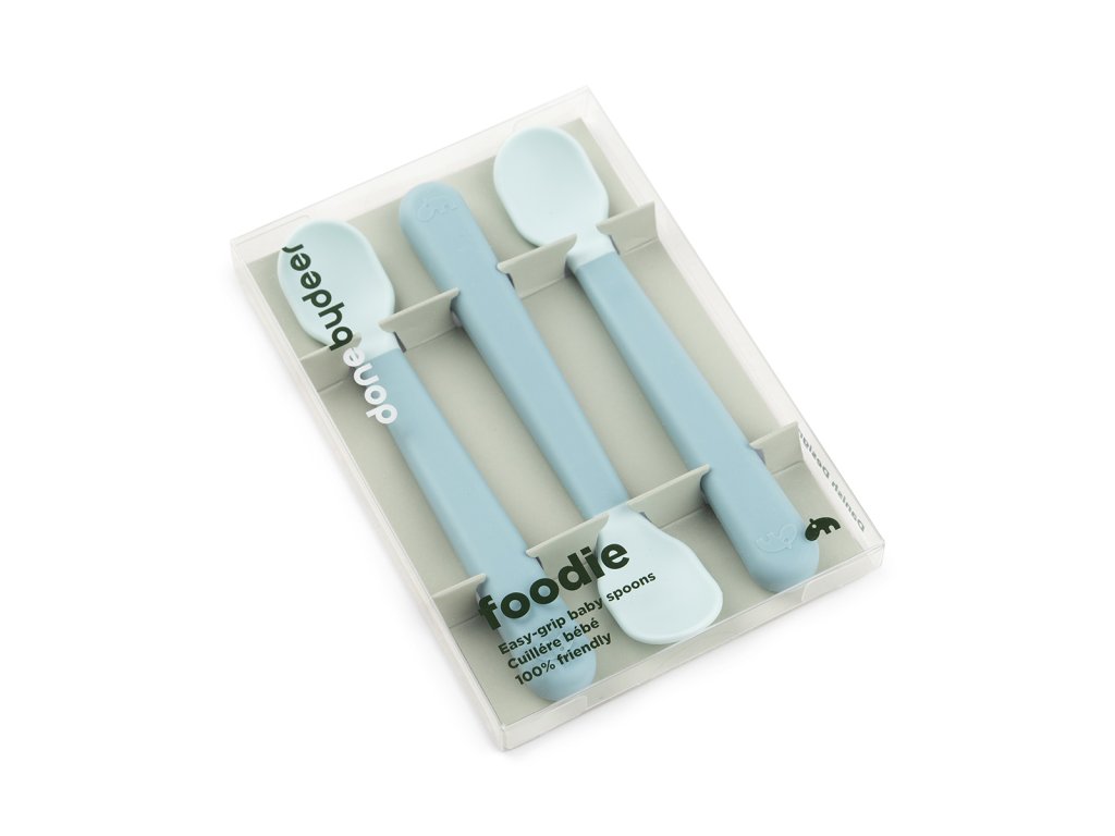 Sada lžiček Foodie má měkké, zaoblené hrany, díky čemuž jsou bezpečné pro nejmenší, kteří si trénují jídlo sami. Lžičky perfektně padnou do malých rukou a byly důkladně testovány dětmi. Jakmile příbory doslouží svému účelu prostřednictvím bezpočtu rodinných večeří, lze je roztřídit jako plasty a recyklovat na nové produkty každodenního života.