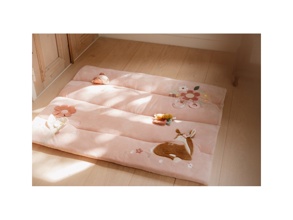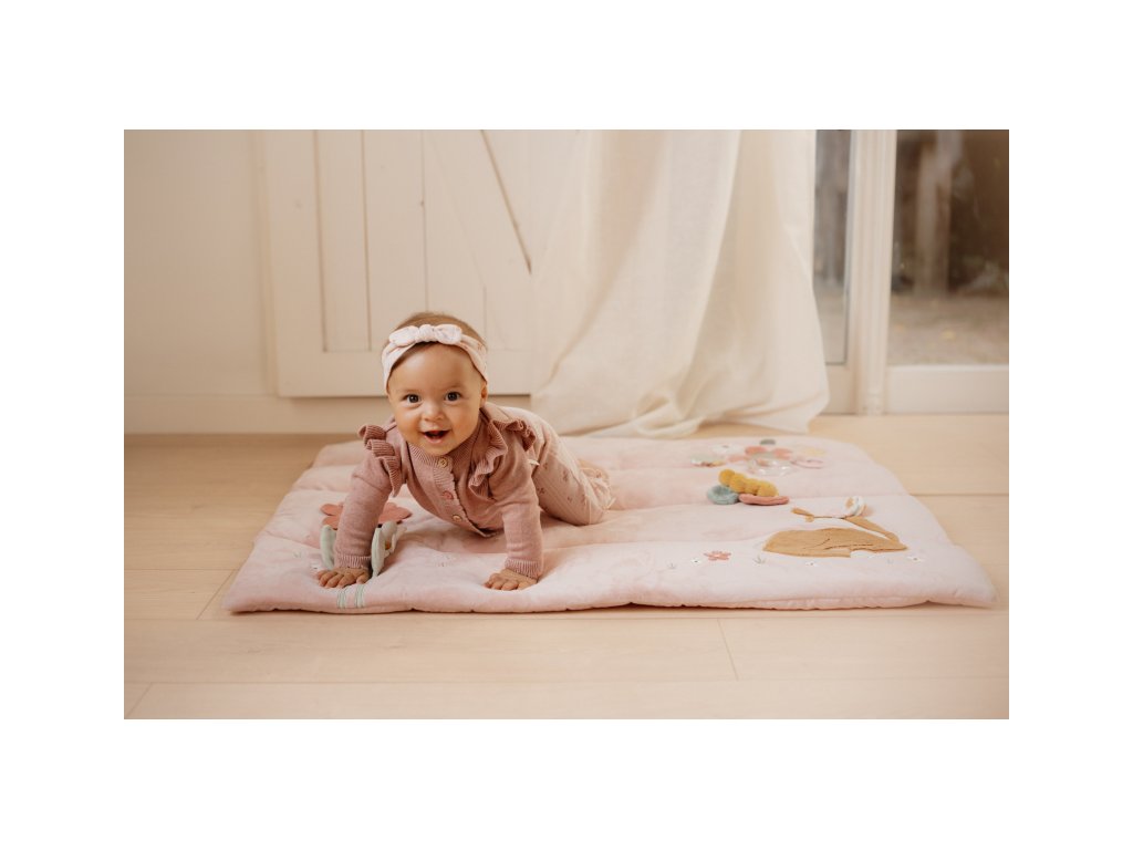 Měkká hrací deka nabízí pohodlí a různorodé aktivity pro zabavení vašeho dítěte. Na dece najdete plyšovou srnku, kytičky s bezpečným zrcátkem a šusticími lístky, plyšového ptáčka a motýlka i chrasticí kroužky a kousátko. Hrací deka je součástí designové kolekce hraček Little Dutch Fairy Garden inspirované životem na zahradě. Rozměry: 80 x 100 cm Vhodné pro děti od narození.