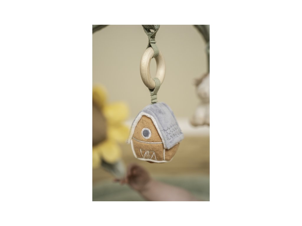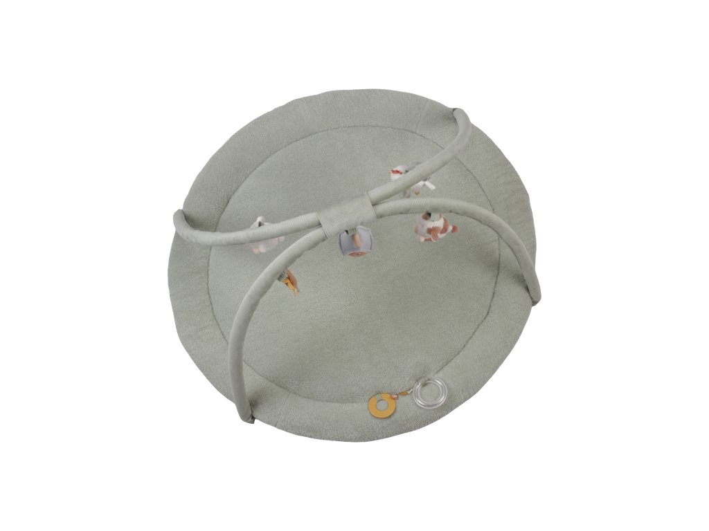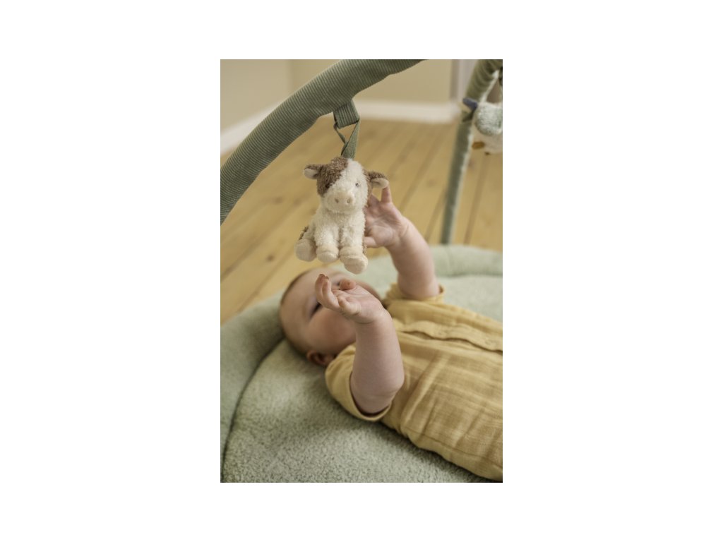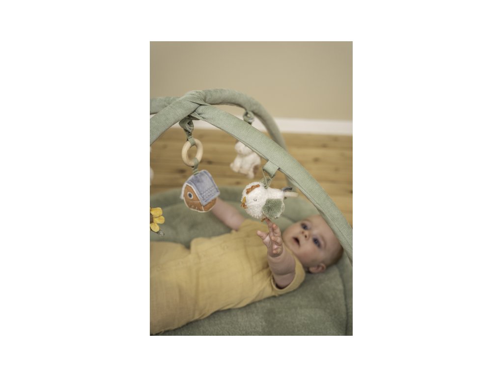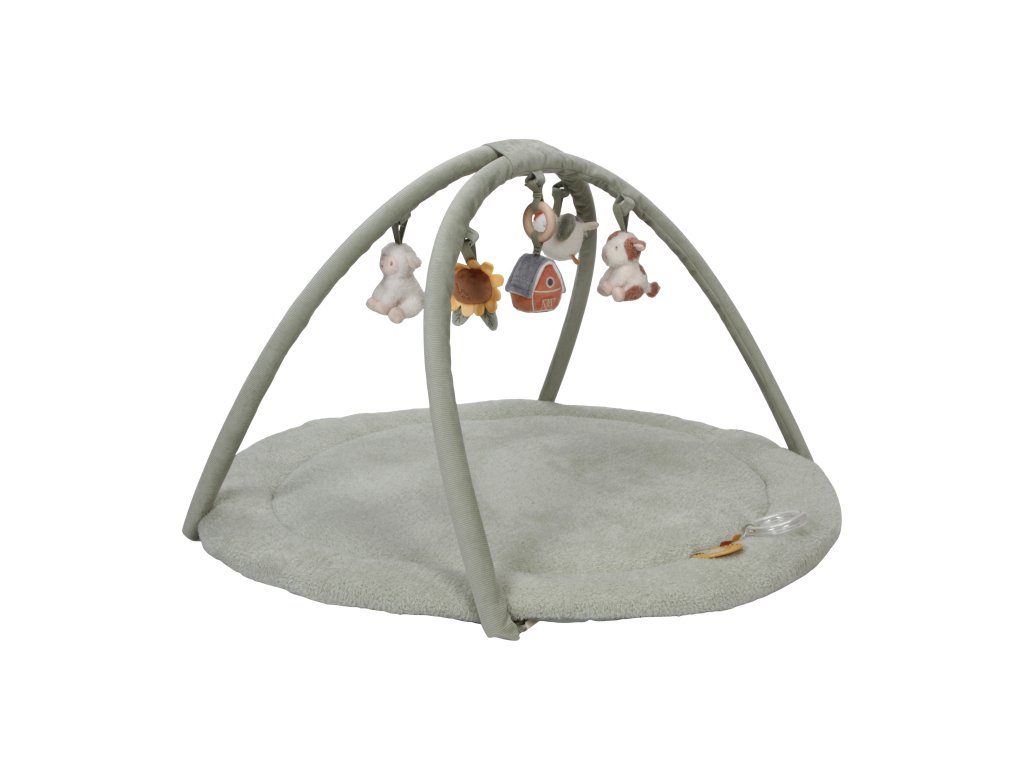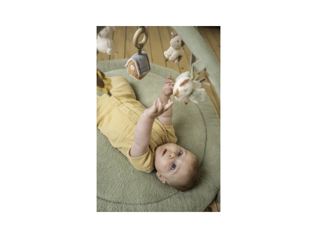 Měkká hrací deka s hrazdou, na které jsou zavěšené hračky v podobě zvířátek a motivů ze života na farmě. Při zkoumání hraček upoutá pozornost dítěte chrastění, šustění, pískání i zvonění. Hračky jsou odnímatelné a je možné je používat i samostatně. Hrací deka s hračkami podporuje rozvoj smyslů dítě i jeho jemné motoriky. Hrací deka je součástí designové kolekce hraček Little Dutch Farma. Rozměry: 90 x 90 x 48 cm Vhodné pro děti od narození.