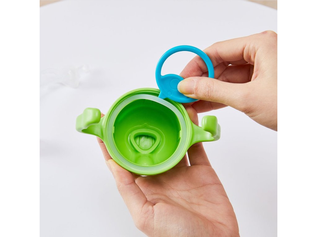 Závažíčko na konci brčka se pohybuje spolu s nápojem a lze tak pít z hrnečku pod jakýmkoli úhlem a umožní tak dětem vypít nápoj až do poslední kapky! Silikonové brčko s dvoucestným ventilem umožňuje snadné pití a zároveň zabrání rozlití. Jednoduché ergonomické úchyty na hrnečku a snadné odklopení víčka podporují samostatnost vašeho dítěte.