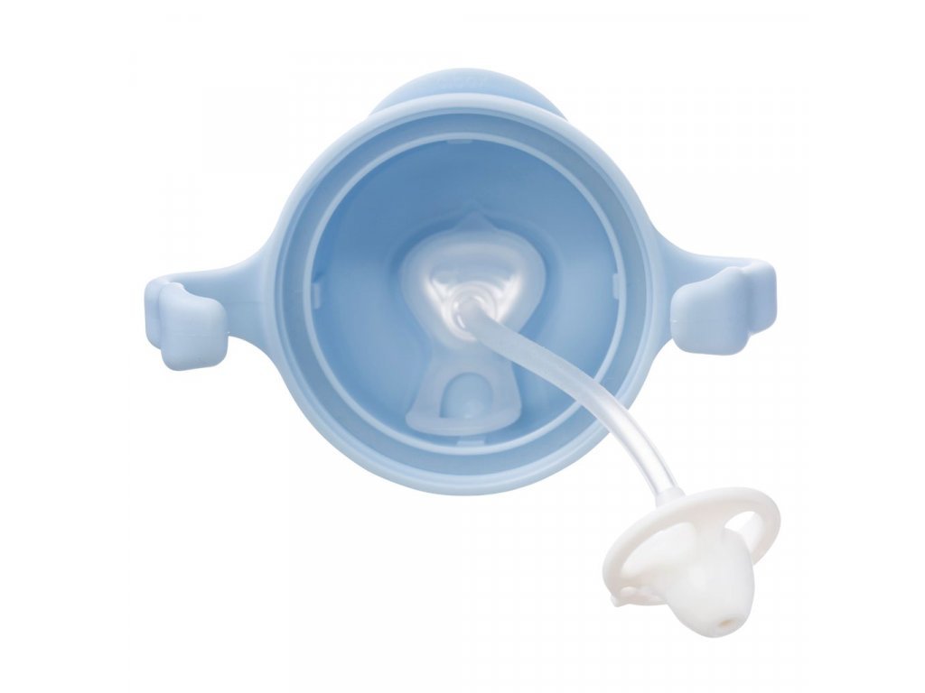 Materiál: hrneček a víčko polypropylen (PP), brčko - silikon, závažíčko na konci měkkého ohebného brčka - polypropylen a ocel