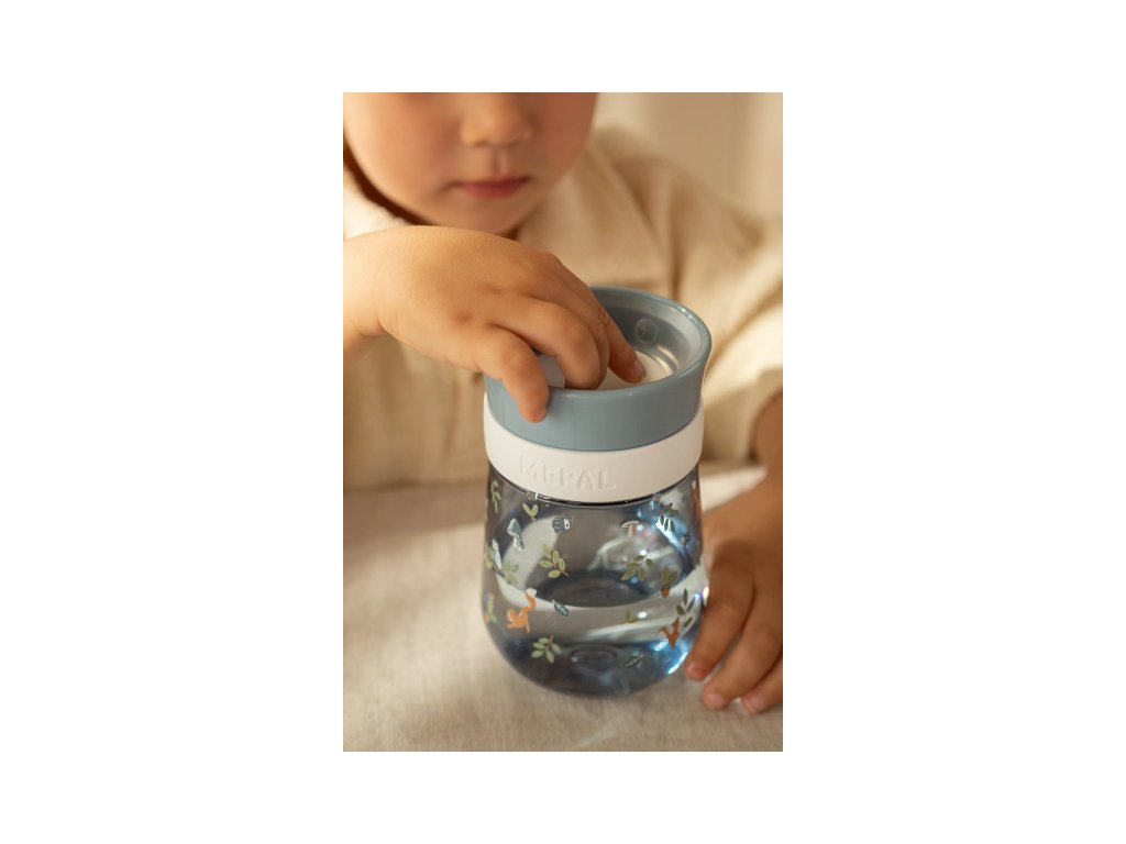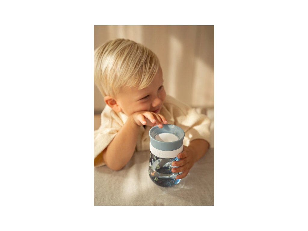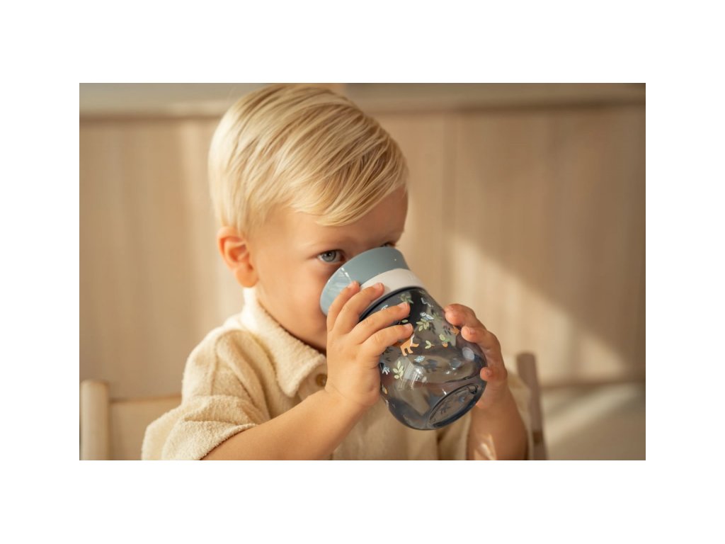 Trénovací hrnek je ideální pro děti, které se učí pít z klasického hrnku. Silikonové víčko se systémem 360° umožňuje pít z kteréhokoli místa po obvodu hrnku bez rizika rozlití. Tekutina teče z hrnku po naklonění k ústům dítěte kontrolovaným způsobem, takže dítě na sebe při pití obsah hnku nevylije. Když pít přestane, hrnek se díky speciální membráně automaticky uzavře.