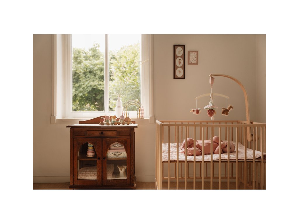 Krásný dřevěný kolotoč z kolekce hraček Little Dutch Fairy Garden hraje po natažení ukolébavku pro uklidnění vašeho miminka před spaním. Pozornost dítěte upoutá pět otáčejících se hraček v podobě zvířátek a motivů ze života v lese. Kolotoč se snadno připevní na postýlku či ohrádku. Kolotoč je součástí designové kolekce hraček a doplňků Little Dutch Fairy Garden inspirované životem na zahradě. Vyrobeno z dřeva certifikovaného FSC. Rozměry: 37 x 52 x 75 cm Vhodné pro děti od narození.