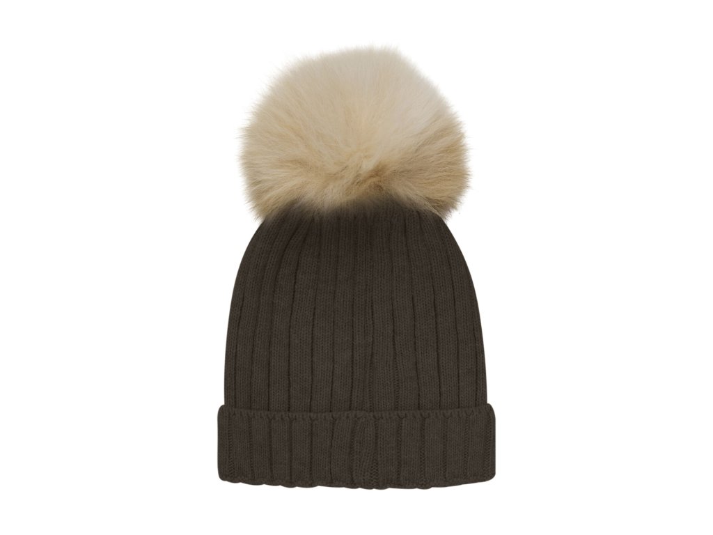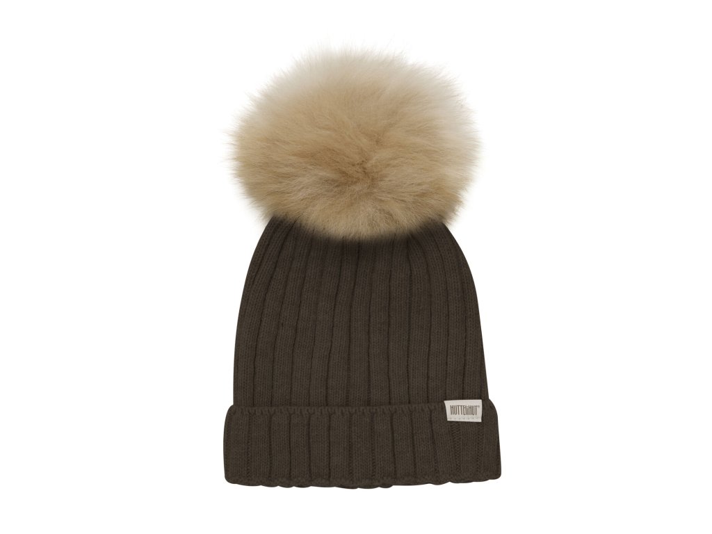HUTTELiHUT - Čepice s bambulí z alpačí srsti - Hnědá