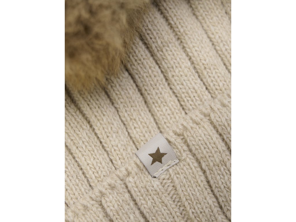 HUTTELiHUT - Čepice s bambulí z alpačí srsti - Sand Melange