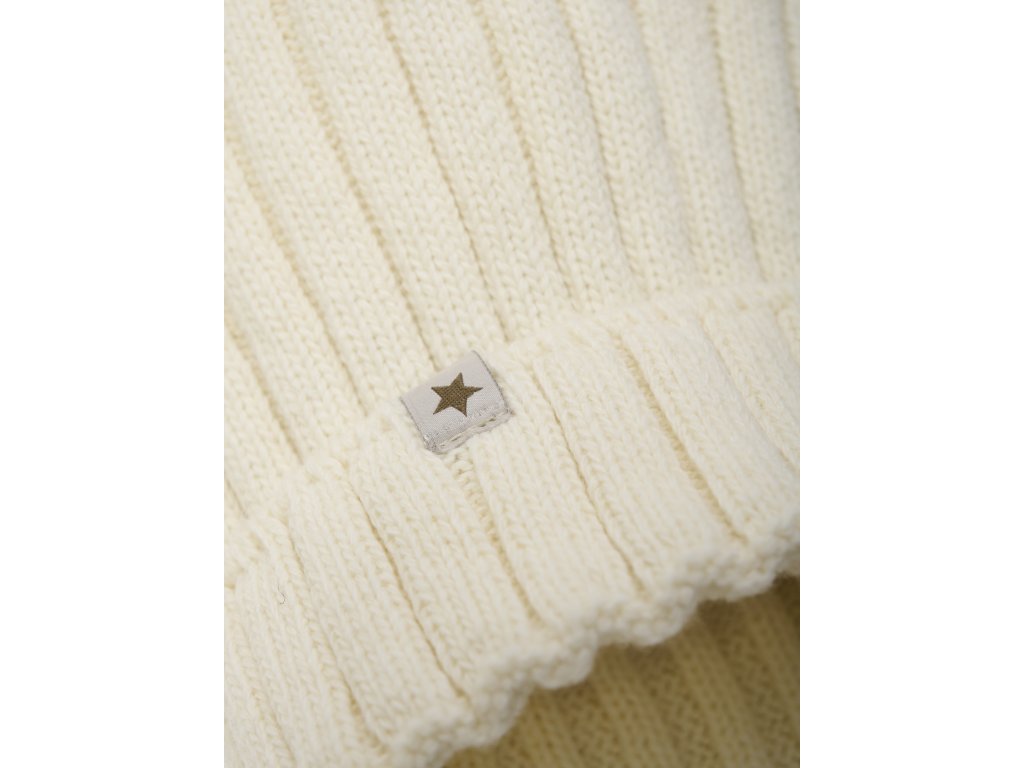 Čepice je ze silného žebrovaného úpletu, ideální pro chladné zimní dny. Vnitřní strana žebrovaného úpletu je pletená měkkou bavlněnou přízí. Čepice Huttelihut je vyrobena ze směsi vlny Merino a je pletená v Dánsku.