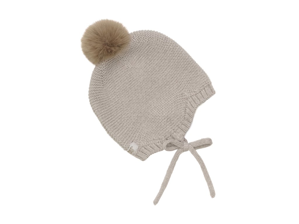 HUTTELiHUT - Kojenecká čepička na zavazování s bambulí - Béžová