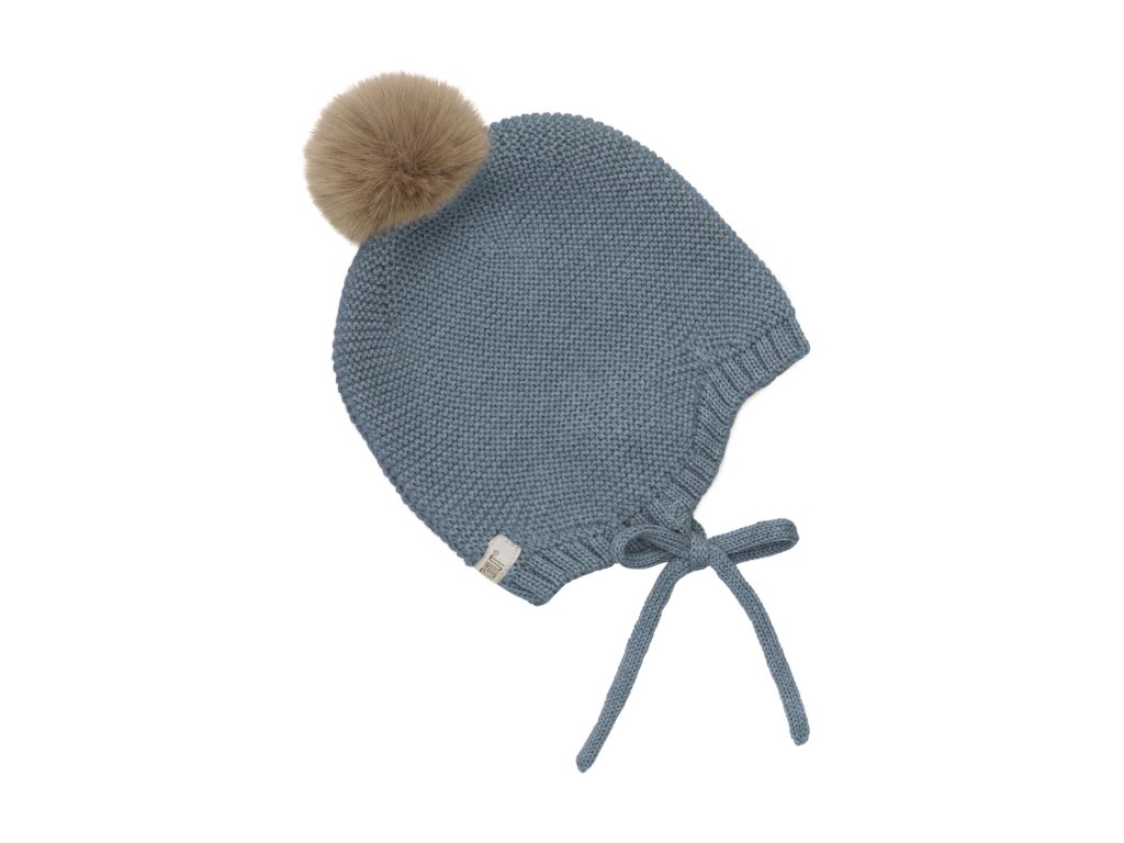 HUTTELiHUT - Kojenecká čepička na zavazování s bambulí - Modrá