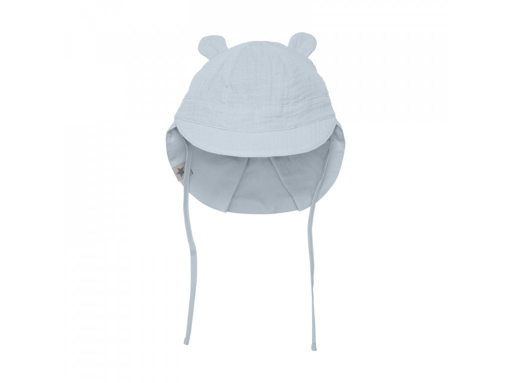 Mušelínová kšiltovka s ochranou krku, oušky a zavazováním pod krkem je skvělá volba pro ty nejmenší.