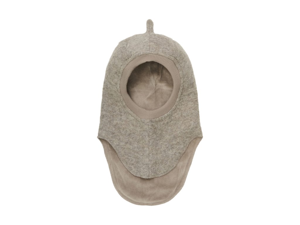 Kukla Huttelihut z melírovaného bavlněného rouna.Kukla Kukla má 2 vrstvy, vnější vrstvu tvoří silná vrstva plstěné bavlny. Vnitřek tvoří měkký velur V předním otvoru je žebrovaný okraj a kukla má praktický dělený design s extra délkou vzadu.
