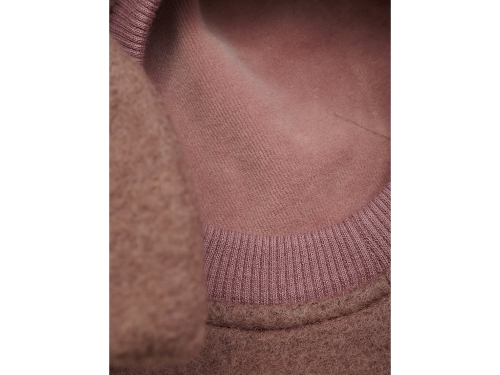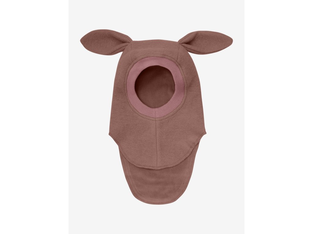 Kukla Huttelihut z melírovaného bavlněného rouna. Kukla Huttelihut má kulatý tvar hlavy se dvěma plyšovýma ušima nahoře. Kukla má 2 vrstvy, vnější vrstvu tvoří silná vrstva plstěné bavlny. Vnitřek tvoří měkký velur. V předním otvoru je žebrovaný okraj a kukla má praktický dělený design s extra délkou vzadu.