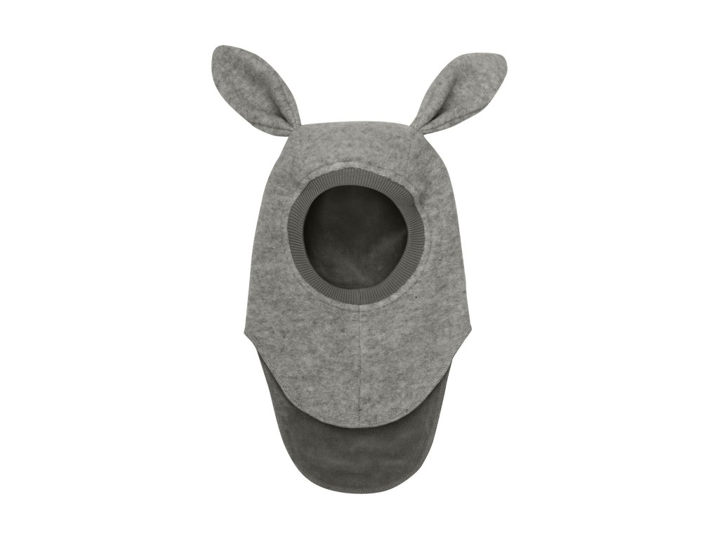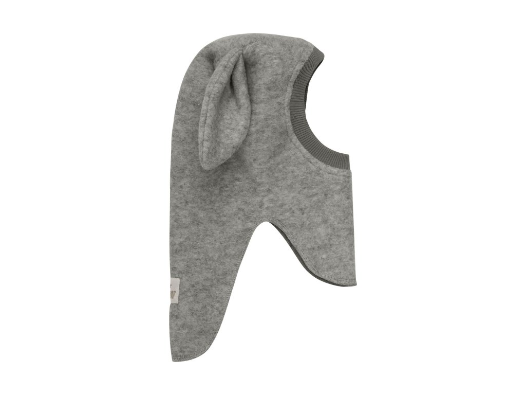 Kukla Huttelihut z melírovaného bavlněného rouna. Kukla Huttelihut má kulatý tvar hlavy se dvěma plyšovýma ušima nahoře. Kukla má 2 vrstvy, vnější vrstvu tvoří silná vrstva plstěné bavlny. Vnitřek tvoří měkký velur V předním otvoru je žebrovaný okraj a kukla má praktický dělený design s extra délkou vzadu.