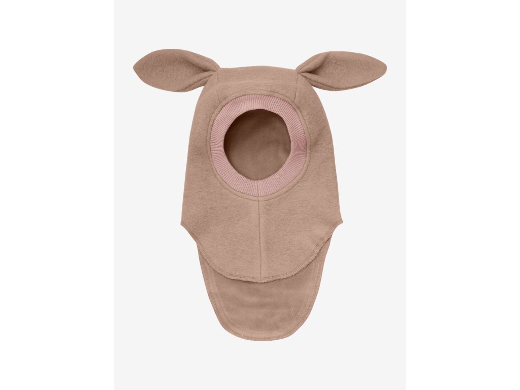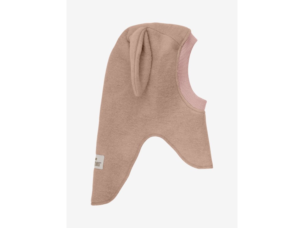 Kukla Huttelihut z melírovaného bavlněného rouna. Kukla Huttelihut má kulatý tvar hlavy se dvěma plyšovýma ušima nahoře. Kukla má 2 vrstvy, vnější vrstvu tvoří silná vrstva plstěné bavlny. Vnitřek tvoří měkký velur. V předním otvoru je žebrovaný okraj a kukla má praktický dělený design s extra délkou vzadu.