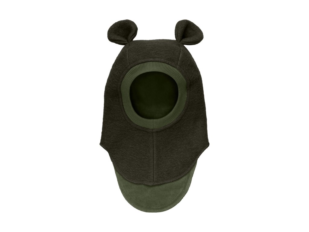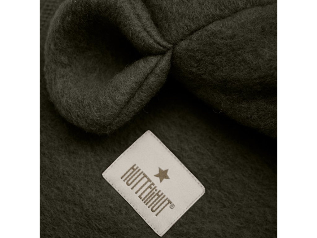 Kukla Huttelihut z melírovaného bavlněného rouna. Kukla Huttelihut má kulatý tvar hlavy se dvěma plyšovýma ušima nahoře. Kukla má 2 vrstvy, vnější vrstvu tvoří silná vrstva plstěné bavlny. Vnitřek tvoří měkký velur V předním otvoru je žebrovaný okraj a kukla má praktický dělený design s extra délkou vzadu.