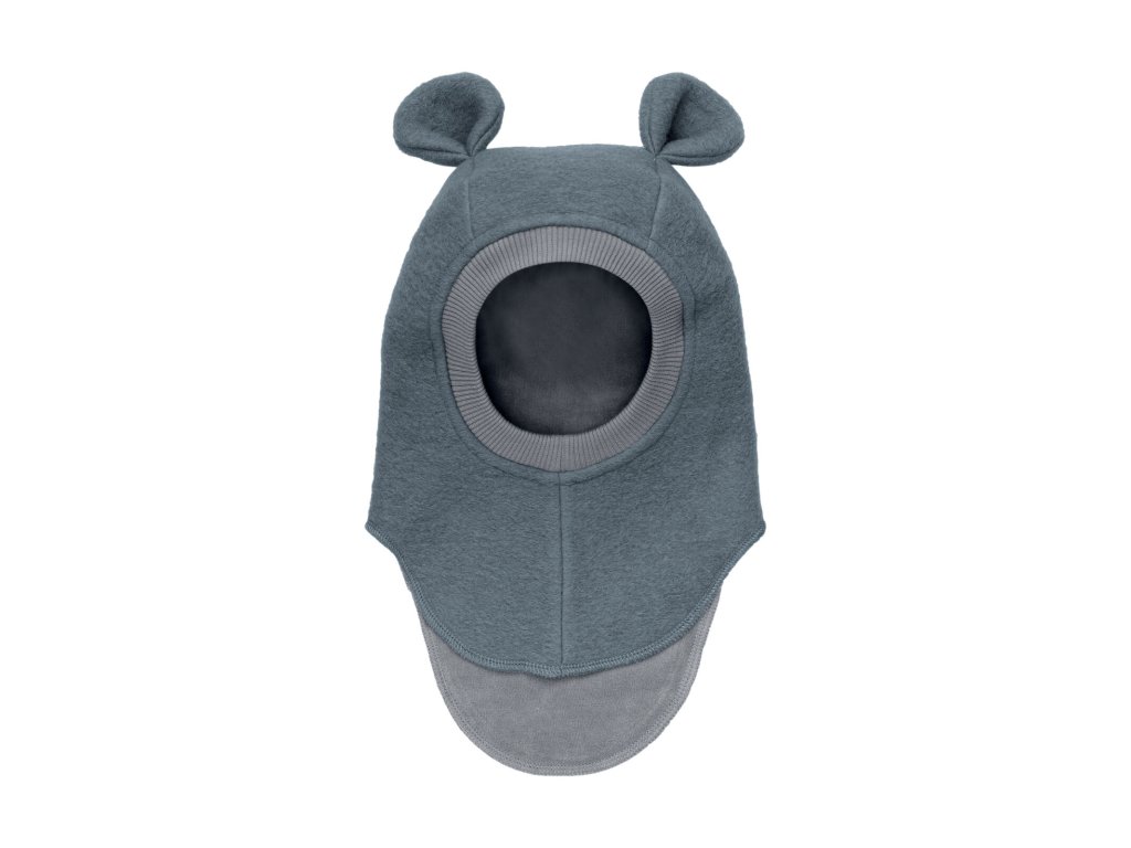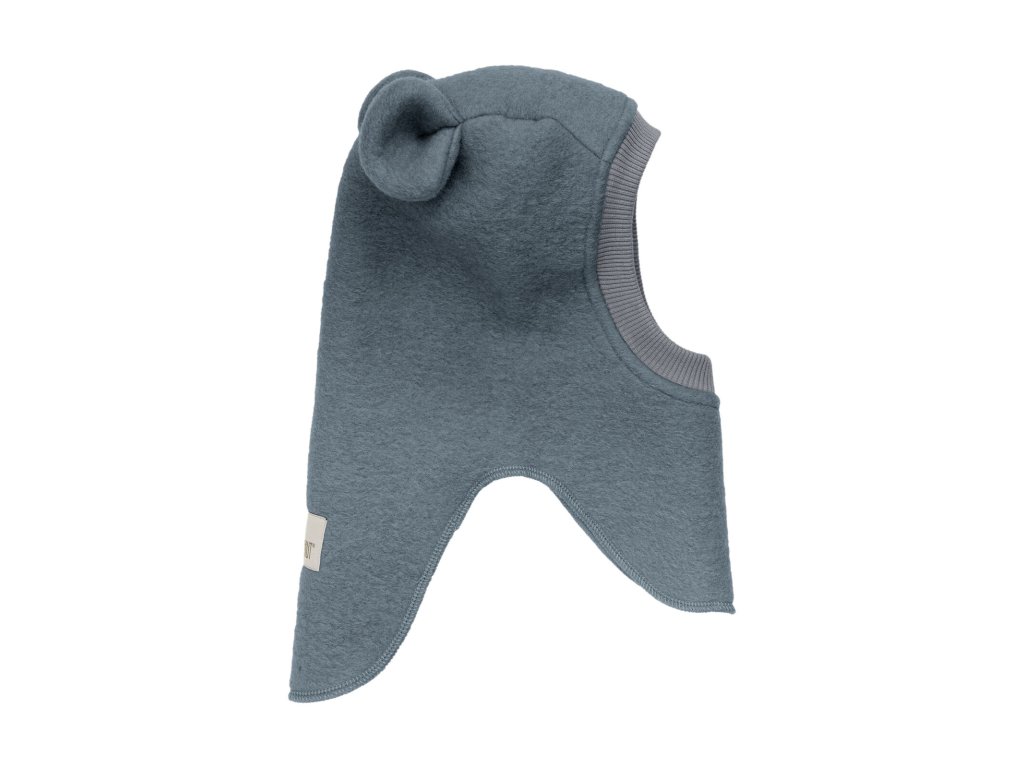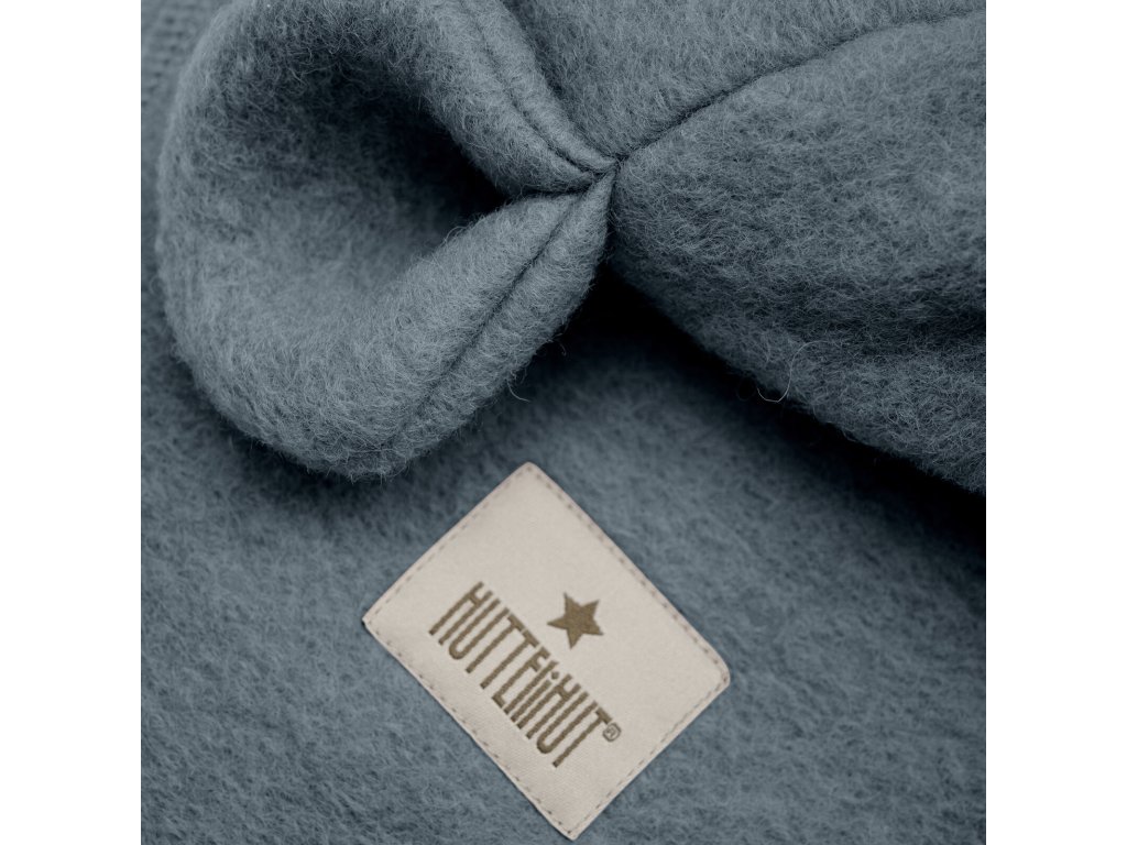 Kukla Huttelihut z melírovaného bavlněného rouna. Kukla Huttelihut má kulatý tvar hlavy se dvěma plyšovýma ušima nahoře. Kukla má 2 vrstvy, vnější vrstvu tvoří silná vrstva plstěné bavlny. Vnitřek tvoří měkký velur V předním otvoru je žebrovaný okraj a kukla má praktický dělený design s extra délkou vzadu.