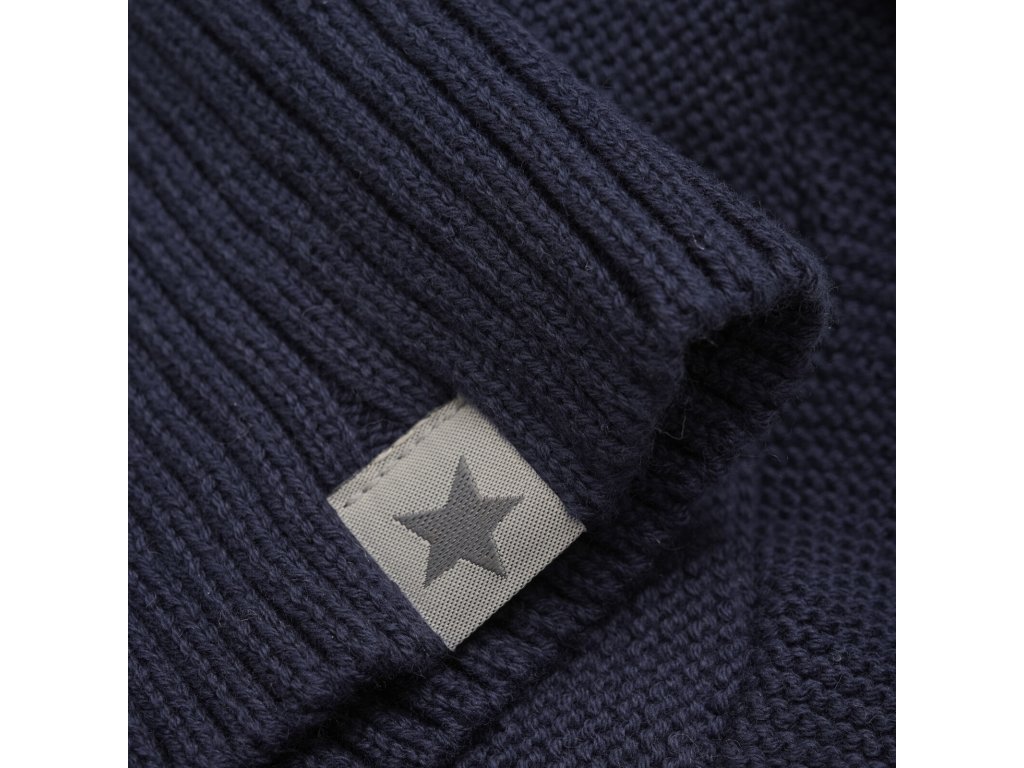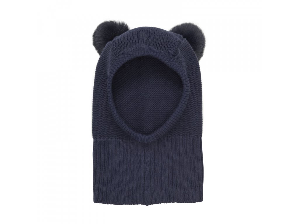 HUTTELiHUT - Pletená kukla s bambulkami - Tmavě modrá