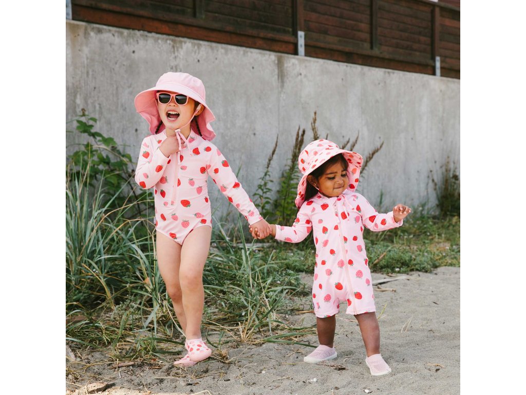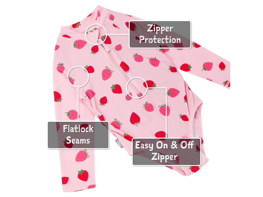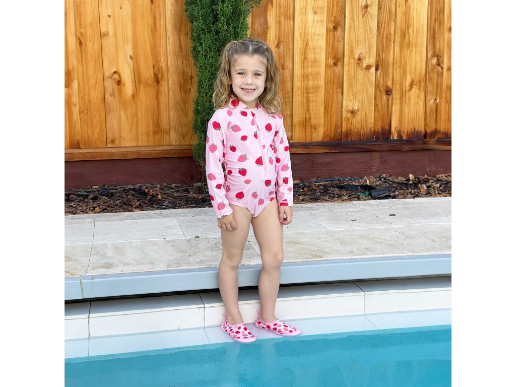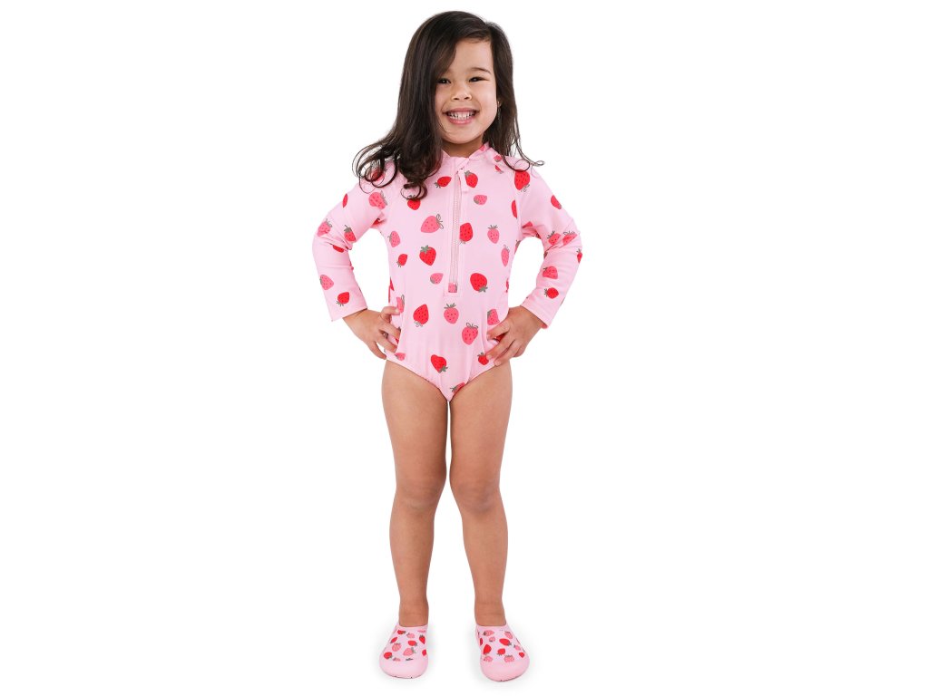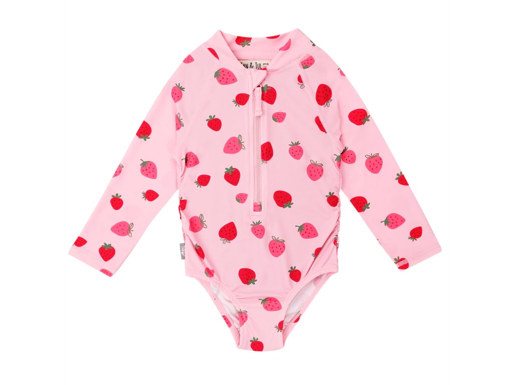 Jan and Jul - Dětské UV plavky s dlouhým rukávem - Pink Strawberry