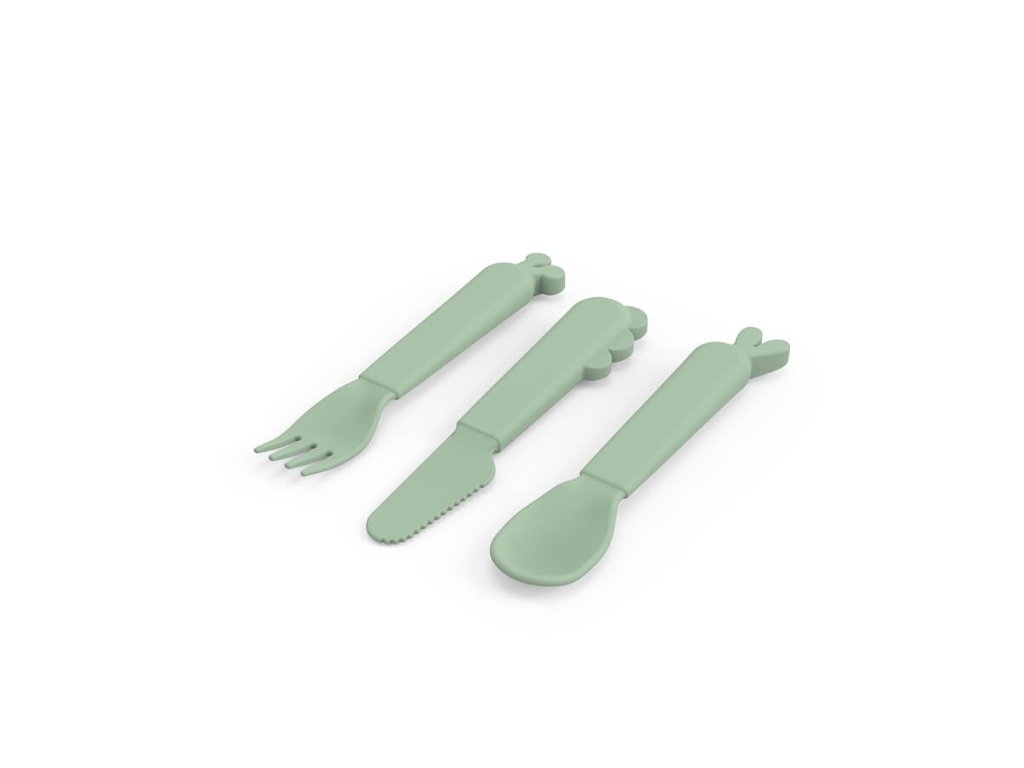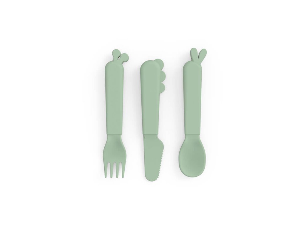 Sada příborů Kiddish Deer friends má zaoblené tvary pro batolata, aby si mohly bezpečně trénovat samostatné stravování. Příbory jsou dobře tvarované pro malé ručičky a důkladně testovány dětmi. Kiddish příbory pro kojence a batolata jsou udržitelné a vyrobené v Dánsku. Když jsou příbory opotřebované, mohou být vytříděny jako tvrdý plast a recyklovány k výrobě nových produktů pro každodenní život. Roztomilá sada příborů obsahuje lžičku s ušima Lalee, vidličku s ušima Raffi a nůž se šupinami Croco. Příbory mají matný hedvábný povrch a ladí se zbytkem kolekce Kiddish.