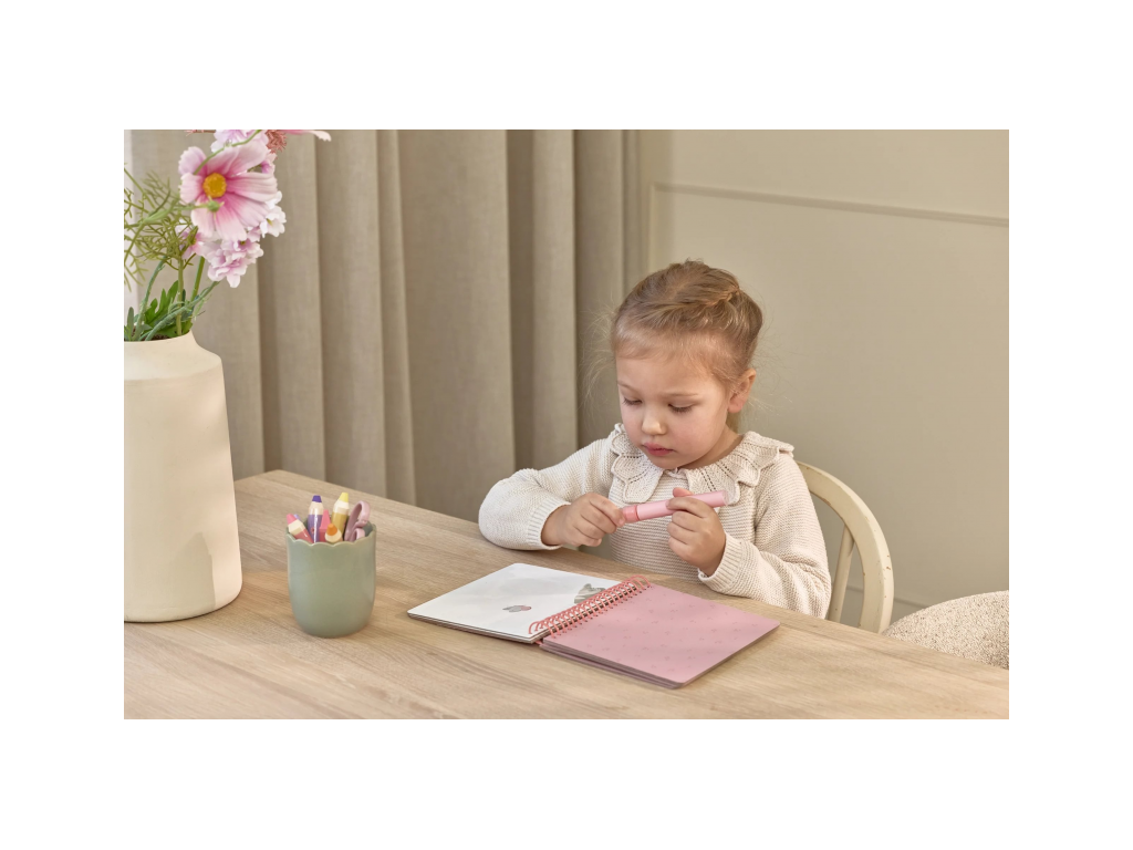 Díky kroužkové vazbě z pevného kartonu drží otevřená pro pohodlné malování.