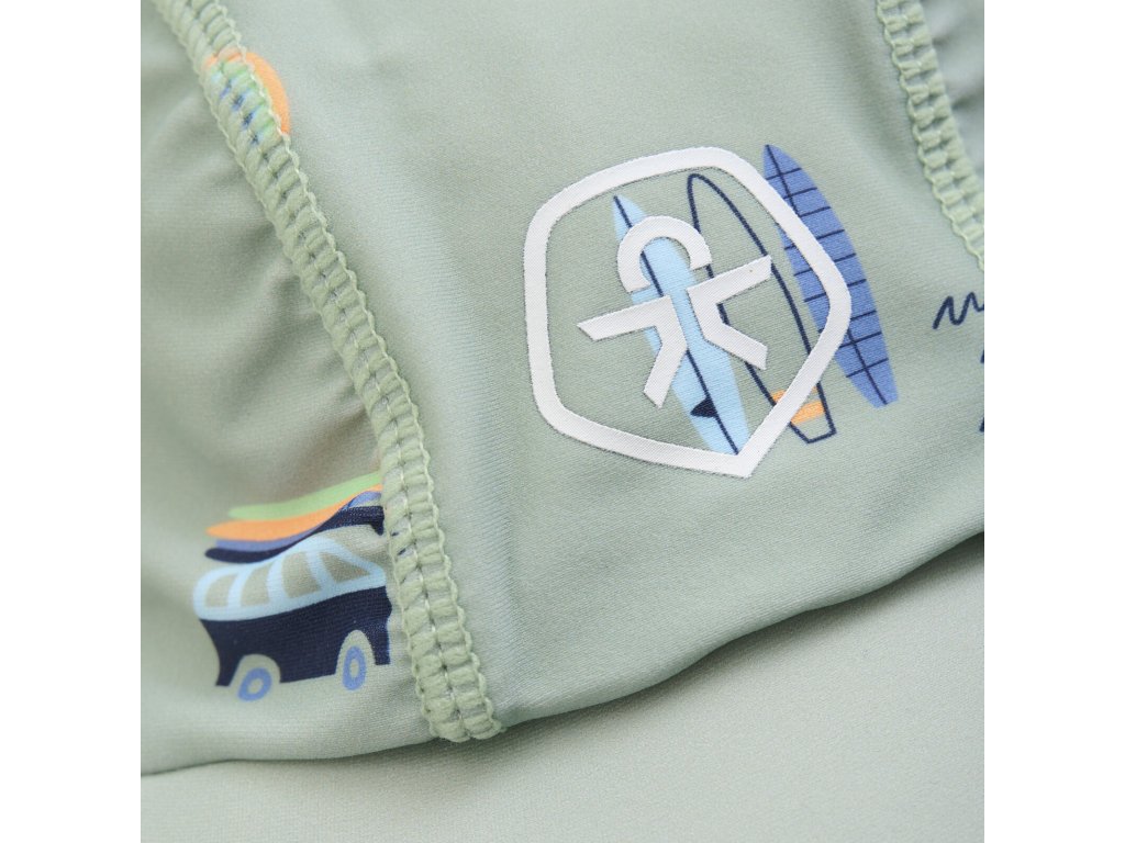 Kojenecká kšiltovka s ochranou krku z plavkoviny s UPF 60 s krásným motivem.