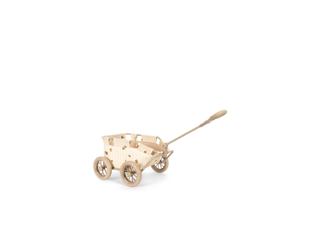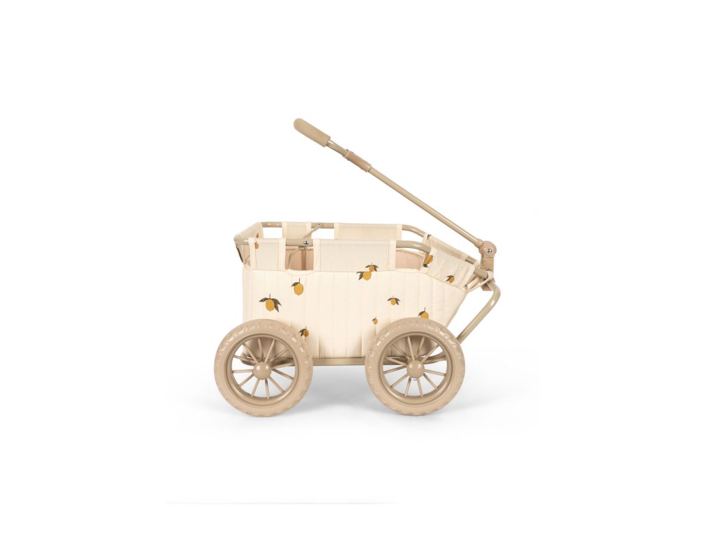 Tento dětský vozíček má robustní kovový rám a je podšitý měkkou bavlnou.