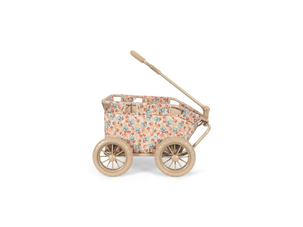 Tento dětský vozíček má robustní kovový rám a je podšitý měkkou bavlnou.