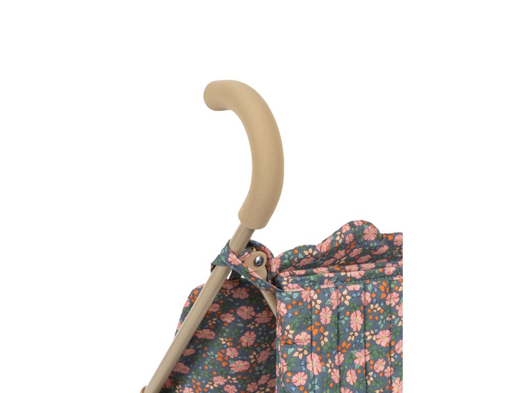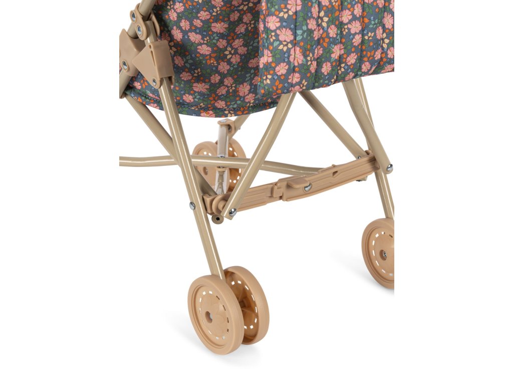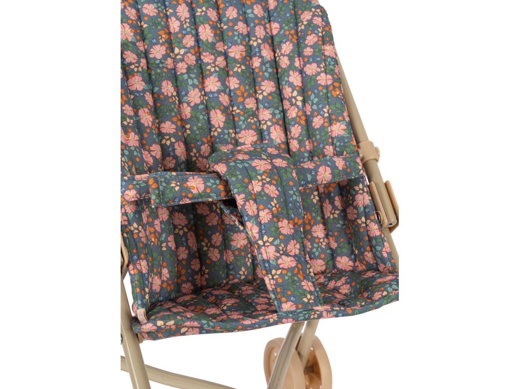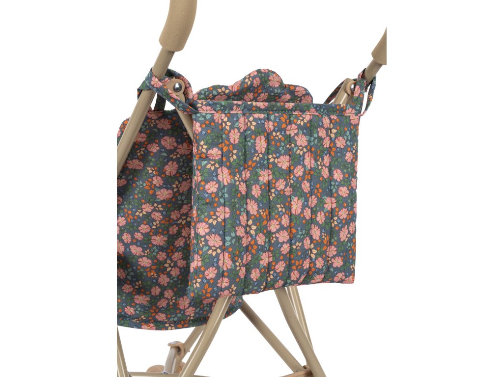 Kočárek pro panenky s postrojem, taškou na přenášení a dvojitými kolečky na všech čtyřech nohách pro větší stabilitu.