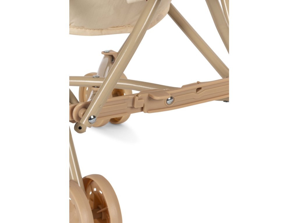 Kočárek má náš klasický design, je vybaven postrojem, taškou a dvojitými kolečky na všech čtyřech nohách pro extra stabilitu.