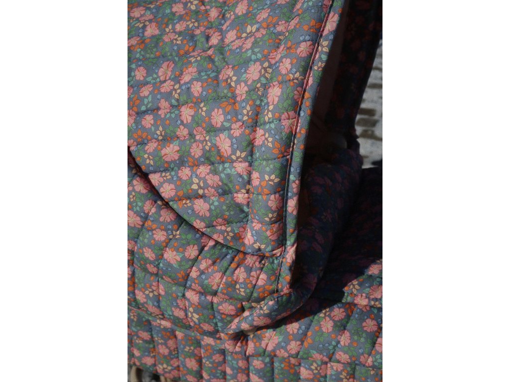 Dětský kočárek ve vintage stylu navržený se čtyřmi velkými koly. Má prošívanou látku, jemné vlnité okraje a polstrovanou matraci. Pod kočárkem se nachází měkký úložný koš. Rám je vyroben z kovu s měkkými, houbovitými držadly pro snadné uchopení.