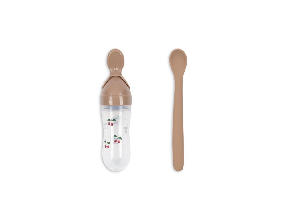 Jednoduše naplňte silikonovou lahvičku rozmixovaným krmivem a jemně zatlačte, dokud na lžičce nebudete mít správné množství.