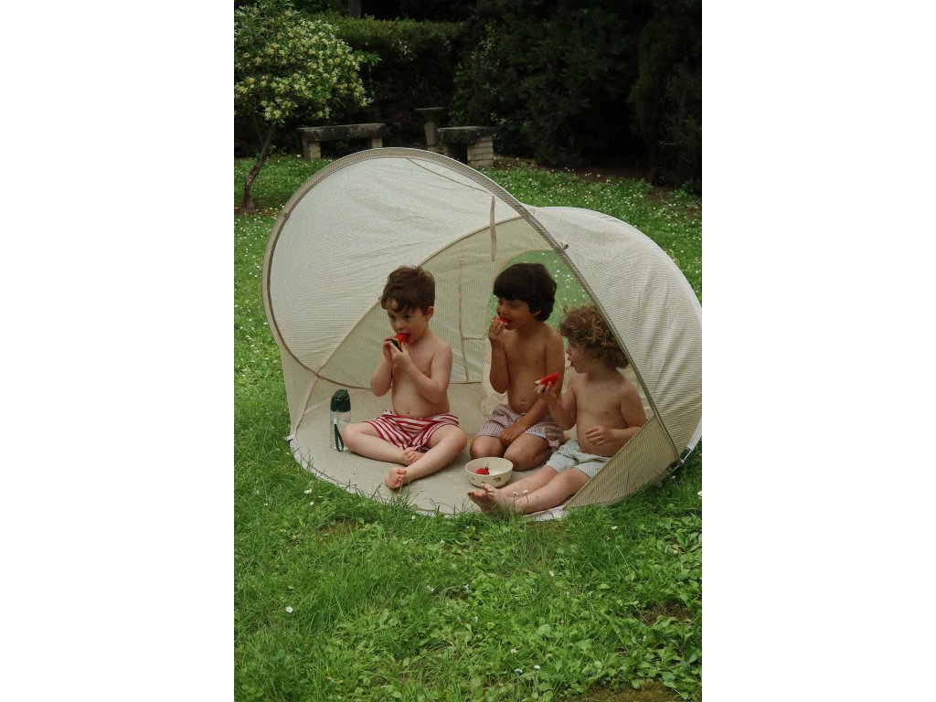 Menší verze oblíbeného plážového stanu Konges Slojd, vhodná pro miminka a malé děti (hledáte-li stan i pro dospělé, doporučujeme větší plážové stany Konges Slojd nebo Liewood). Malý plážový stan se vejde do většiny větších kufrů, abyste si jej mohli vzít s sebou na dovolenou.