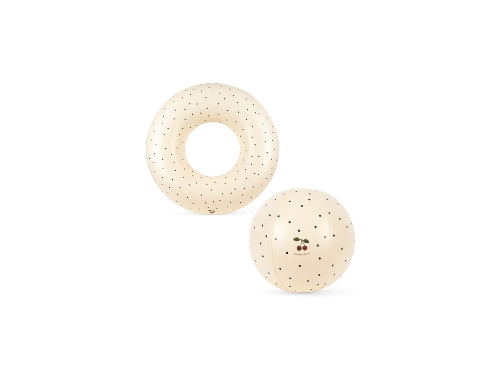 Konges Slojd - Set plaveckého kruhu a plážového míče - Navy dots