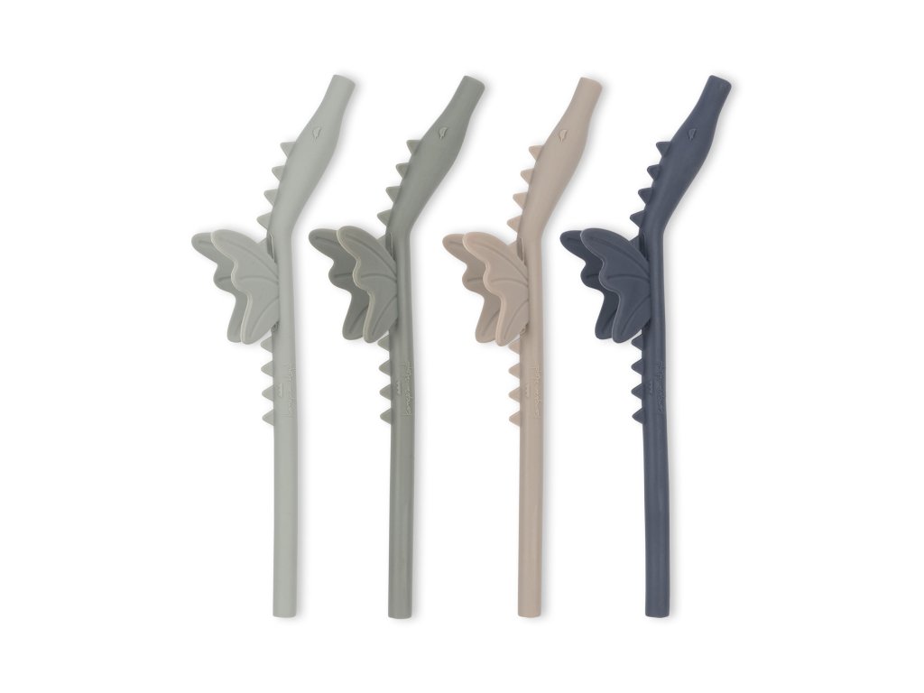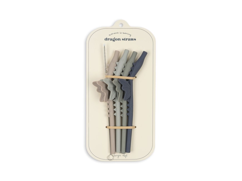 Konges Slojd - Silikonová brčka 4ks DRAGON - FOREST MIX