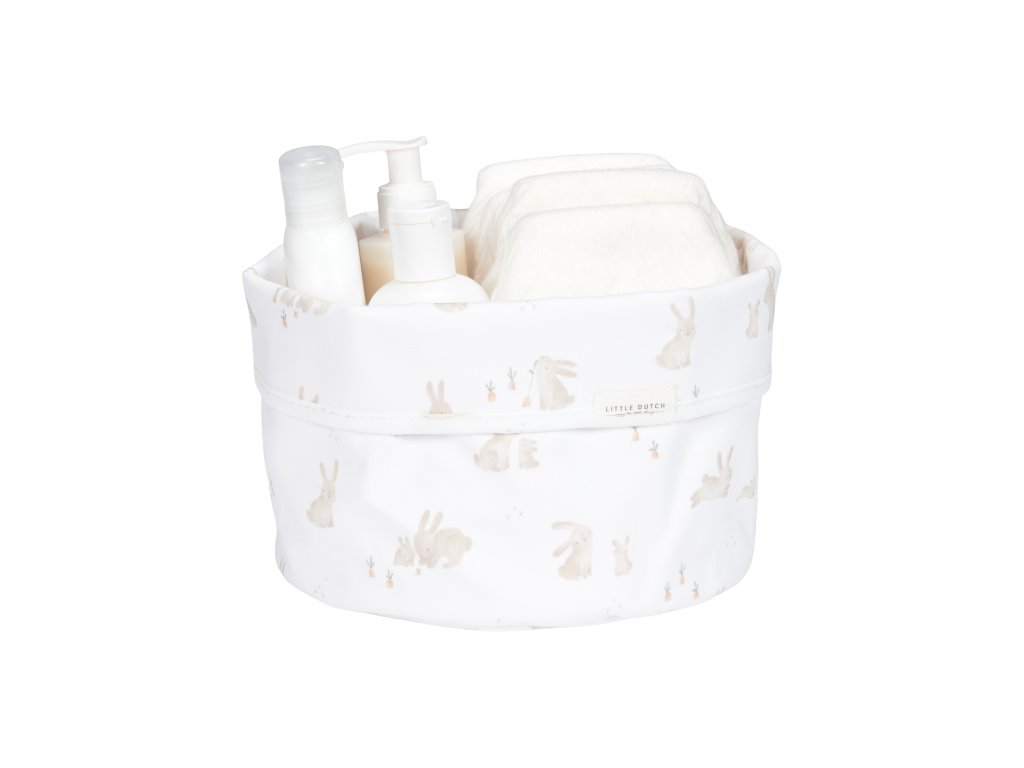 Košík v krásném designu kolekce Little Dutch Baby Bunny je vyroben z pevného bavlněného materiálu. Využijete jej pro přehledné uložení všeho, co potřebujete mít po ruce při každodenní péči o vaše miminko. Košík bude zároveň krásným doplňkem na přebalovacím pultu či poličce v dětském pokoji. Rozměry: 21 x 21 x 18 cm