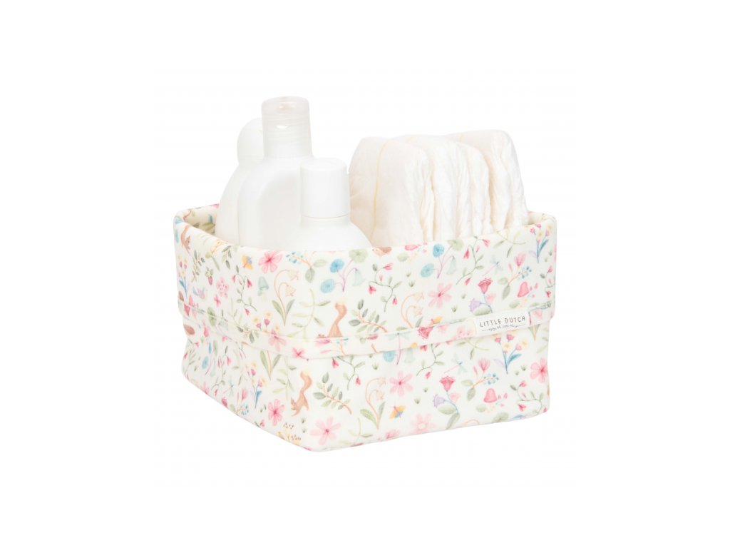Košík je součástí designové kolekce textilu, hraček a doplňků Little Dutch Fairy Garden inspirované životem na zahradě.