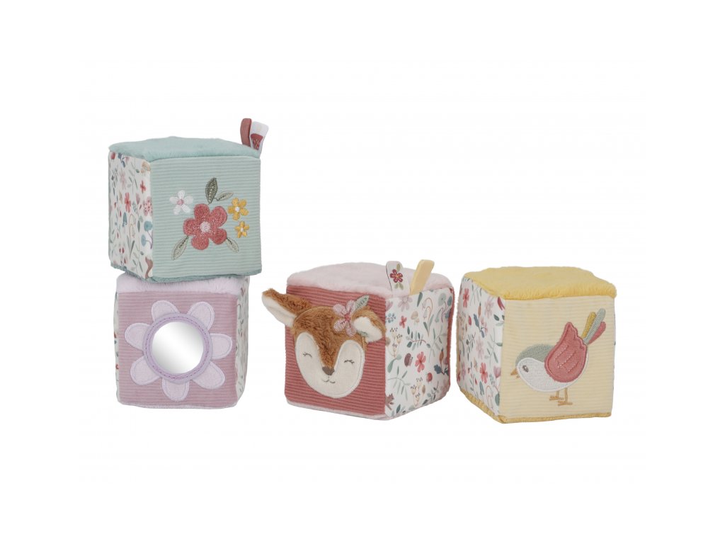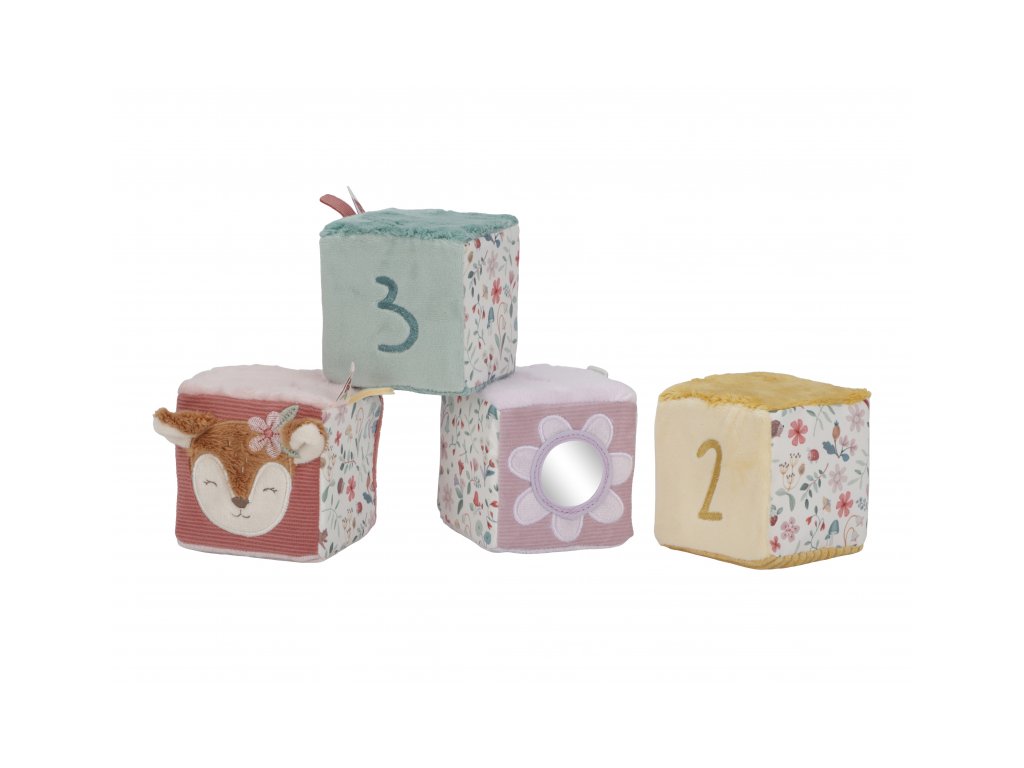 Měkké textilní kostky s krásnými motivy ze života na zahradě jsou díky svému provedení snadno uchopitelné malými dětskými ručičkami. Různorodé textury a vzory lákají dítě ke zkoumání, kostky navíc při pohybu jemně cinkají a chrastí. Hračka je součástí designové kolekce hraček a doplňků Little Dutch Fairy Garden inspirované životem na zahradě. Rozměry kostky: 8 x 8 x 8 cm Složení: 100% polyester Vhodné pro děti od narození.